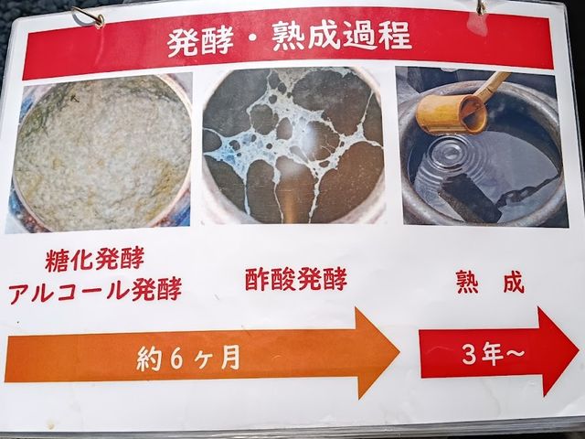 曾木の滝を見学した後は、バスは錦江湾を目指して南へと進み、錦江湾の北東岸に位置する黒酢の郷へに向かいます。日本初の黒酢レストラン「黒酢の郷 桷志田」に到着すると、まずは大量に並んでいる壺=壺畑を目の前にして、黒酢の作り方を教わりました。壺畑の中から、仕込み後約1ヶ月、約1年後、約2年後の壺の蓋を開いて、発酵・熟成過程を実際に見せて頂きました。約2万個もの黒酢の壺が、錦江湾と桜島を背景に並んでいる様子は、驚くと同時に伝統の重みを感じました。