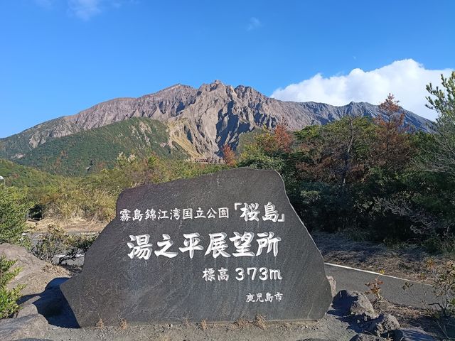 島の西側にある湯之平展望所は、桜島で最も高い場所にある360度パノラマの展望所であり、写真に示すように、青空の中で噴煙を上げる雄大な桜島はもちろん、錦江湾を挟んで対岸にある鹿児島市街地も眼下に望むことができました。