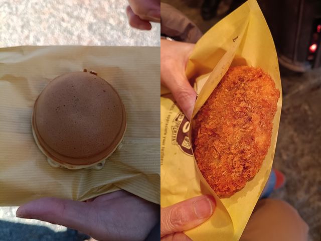 阿蘇神社の参道は、他の神社のように縦に延びておらず、楼門前から左右に参道が延びている点が変わっています。バスガイドさんが、参道の左側にある「たしろや」の万十(回転焼き)、右側にある「とり宮」の馬コロッケを勧めていました。ガイドさんの言葉につられて、思わず両方とも食べたのですが、両方とも美味しかったです・・・(笑)。