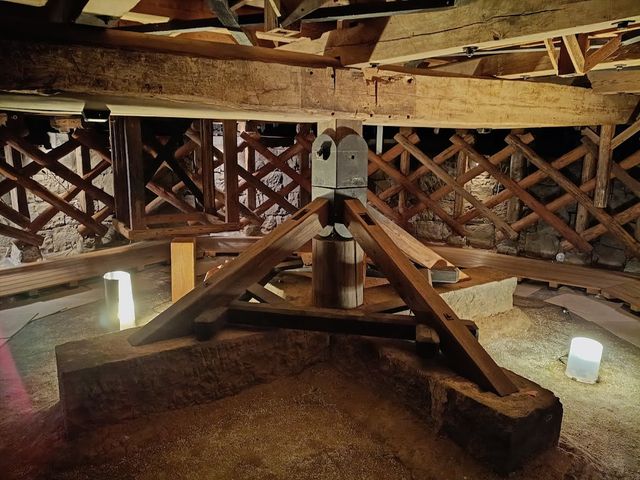 八千代座の中に入ると、今週末の発表会に向けて地元の人が練習をしており、それを見ながら舞台の雰囲気を味わうことができました。また、案内されて奈落の底へ降りると、人力で動く回り舞台や迫り、花道のすっぽんなどの仕掛けも見学することができました。これらの装置が、今も現役で使われているというのは、かなり驚きでした。